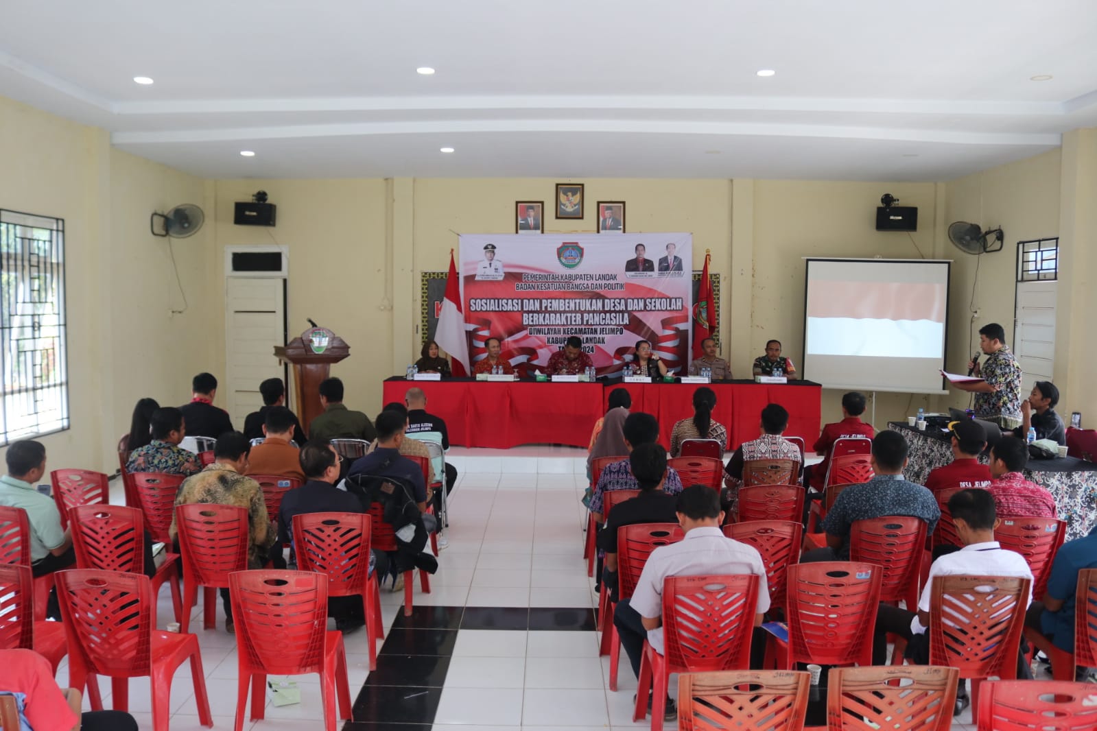 Dihadiri oleh Kepala Bidang Pengembangan Ideologi Pancasila Badan Kesbangpol Provinsi Kalimantan Barat sebagai Narasumber, Kepala Badan Kesbangpol Kabupaten Landak berserta jajaran, Plt. Kepala Bappeda Kabupaten Landak atau pejabat yang mewakili, Kepala Dinas PMPD Kabupaten Landak atau pejabat yang mewakili, Forkopimcam Jelimpo, 13 Kepala Desa se-Kecamatan Jelimpo, Kepala Sekolah SMA/SMK Kecamatan Jelimpo, dan undangan lainnya.