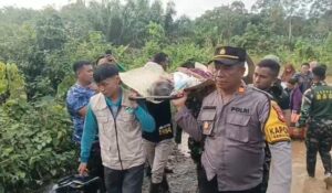 Kapolsek Sanggau Ledo Bersama TNI dan Forkopimcam Evakuasi Lansia Sakit Terdampak Banjir