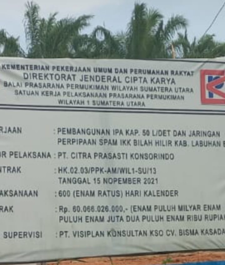 Lebih jauh, pada pembangunan IPA Kapasitas 50 L/DET di Bilah Hilir, Labuhanbatu, dengan anggaran Rp 60 miliar dari APBN 2021, IKI menyoroti dugaan pengerjaan yang asal jadi dan tidak sesuai spesifikasi. Bahkan, pondasi dinding penahan bangunan diduga mengalami kerusakan.