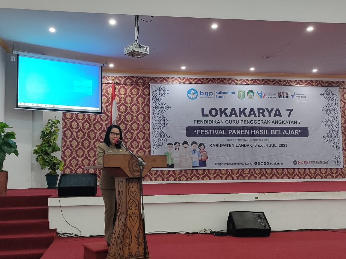Suaraborneosatu.com – Landak. Asisten Administrasi Umum Sekda Landak Ir.Theresia Limawardani, M.Si mewakili Pj.Bupati Landak membuka Kegiatan Lokakarya 7 Calon Guru Penggerak Angkatan 7 dengan tema Festival Panen Hasil Belajar di Kabupaten Landak Tahun 2023, di Aula Besar Kantor Bupati Landak. Selasa, (04/07/2023).