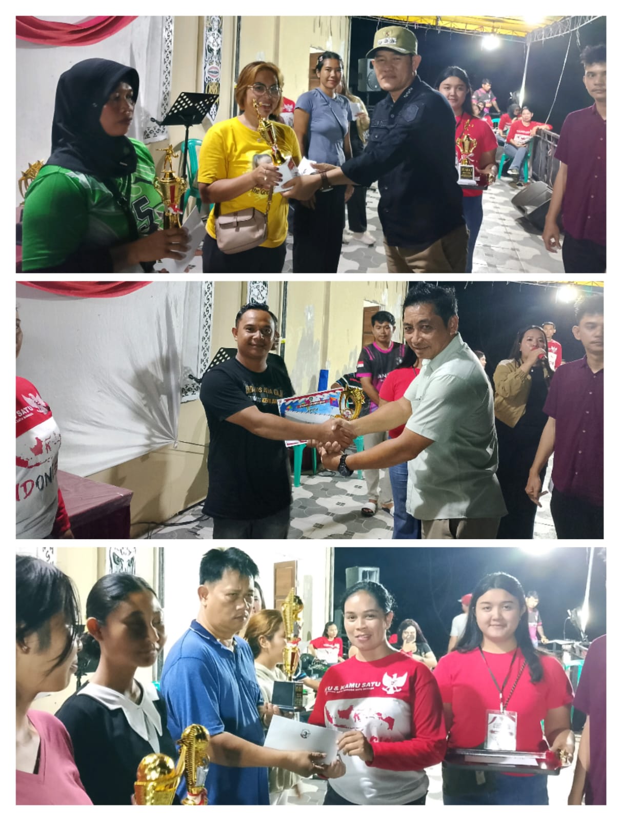 Kegiatan penutupan tersebut di awali dengan sambutan, kemudian dilanjutkan dengan pembagian Doorprize, pengumuman juara dari berbagai perlombaan serta memberikan penghargaan kepada para pemenang, hiburan musik dari penyanyi group labi labi tersebut menjadi puncak acara penutupan yang menambah semarak suasana malam perayaan kemerdekaan.