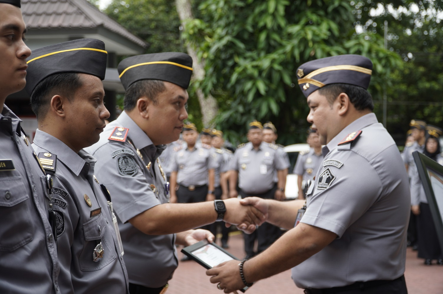 Kegiatan apel pagi kali ini juga dirangkaikan dengan pemberian reward kepada pegawai berprestasi. Terdapat tiga pretasi yan telah diraih oleh Kanwil Kemenkumham Kalbar, yang pertama adalah meraih Peringkat Ketiga untuk kategori Penegakan dan Pelayanan Hukum Bidang Kekayaan Intelektual Tahun 2024, yang kedua adalah pemberian penghargaan karena berhasil mencekal keberangkatan terhadap 1 (satu) orang Warga Negara Indonesia atas nama Marimutu Sinivasan (MS) yang masuk kedalam daftar pencegahan yang masih sah dan berlaku, dan yang terakhir adalah meraih Peringkat Kedua di Kejurnas Kempo Kemenkumham Cup II yang dilaksanakan di Kanwil Kemenkumham Jawa Barat.