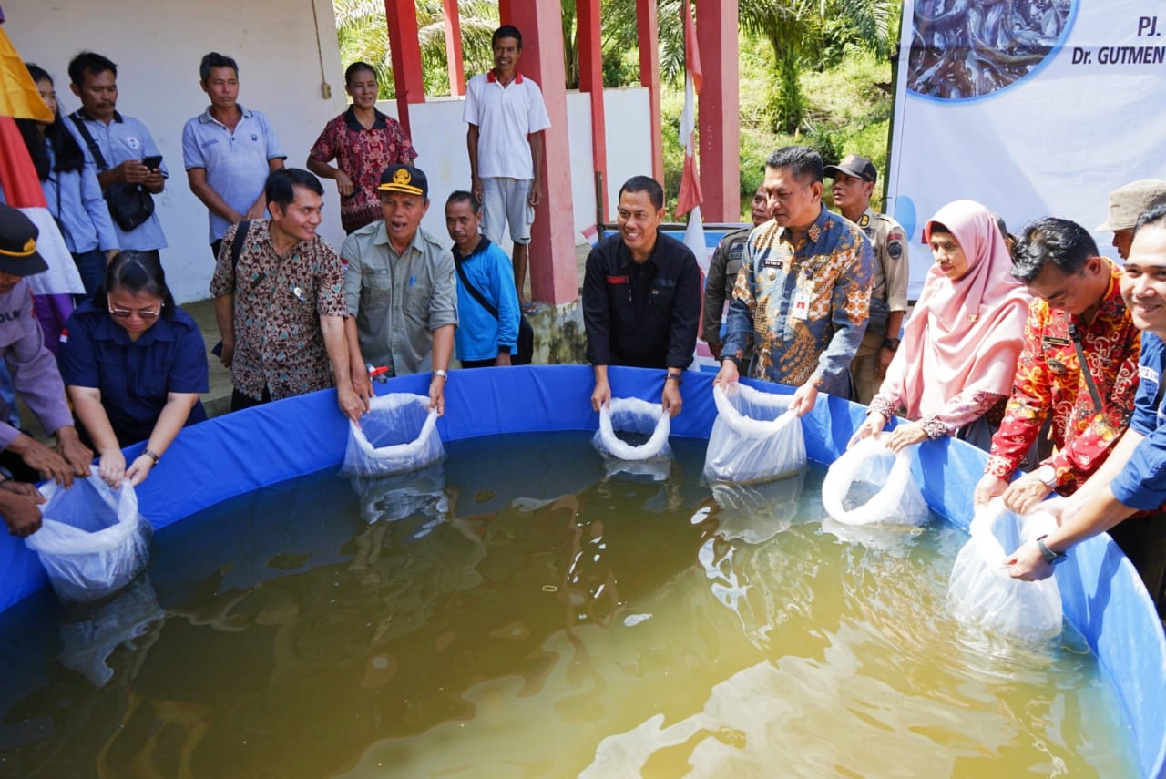 Gutmen menjelaskan bahwa ini juga upaya untuk mendorong dan menumbuh kembangkan pelaku usaha perikanan dalam mencapai ketersediaan akan protein hewani yang berasal dari ikan ini pemerintah Kabupaten Landak memberikan bantuan berupa sarana dan prasarana budidaya ikan seperti benih ikan, pakan ikan, dan bantuan kolam terpal.