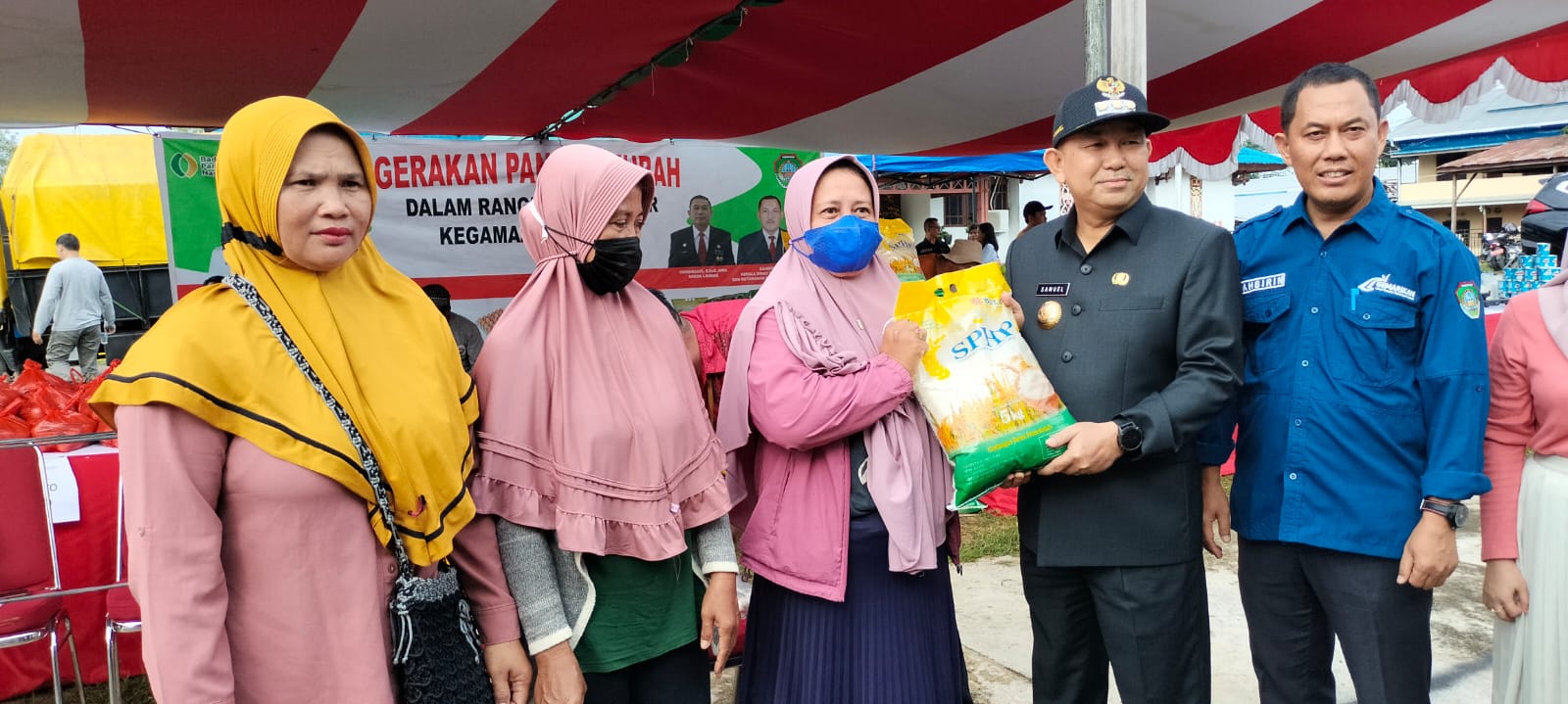 Suaraborneosatu.com – Landak. Pj.Bupati Landak Samuel, SE, M.Si menghadiri Gerakan Pangan Murah (GPM) di kecamatan Ngabang dalam Rangka Hari Besar Keagamaan Nasional, di halaman Dinas Pertanian, Perikanan dan Ketahanan Pangan Kab.Landak. Jum’at, (08/12/2023) Pagi.